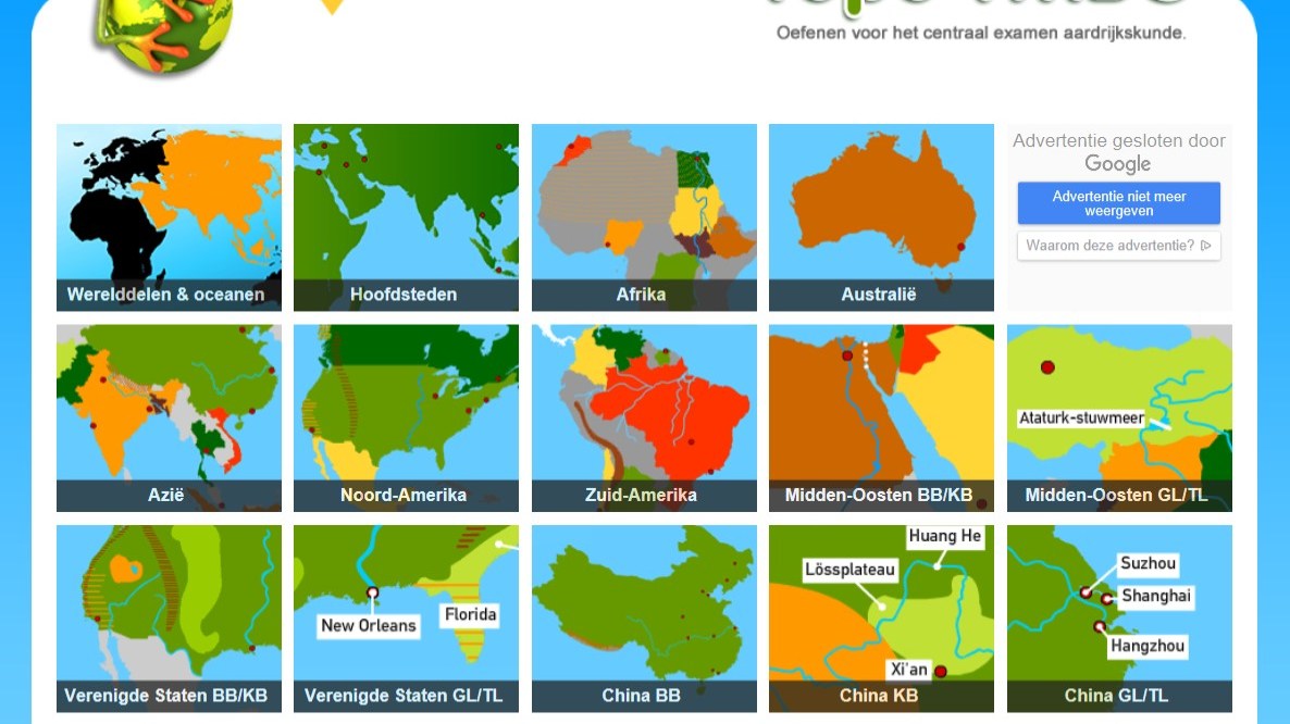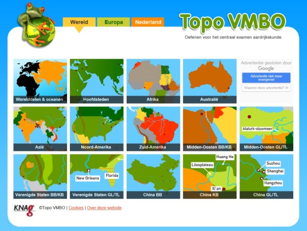 Vandaag hebben we een link ontvangen van een gewaardeerde collega. Het Koninklijk Nederland Aardrijkskundig Genootschap heeft een website ontwikkeld om de topografie voor het VMBO eindexamen te oefenen.