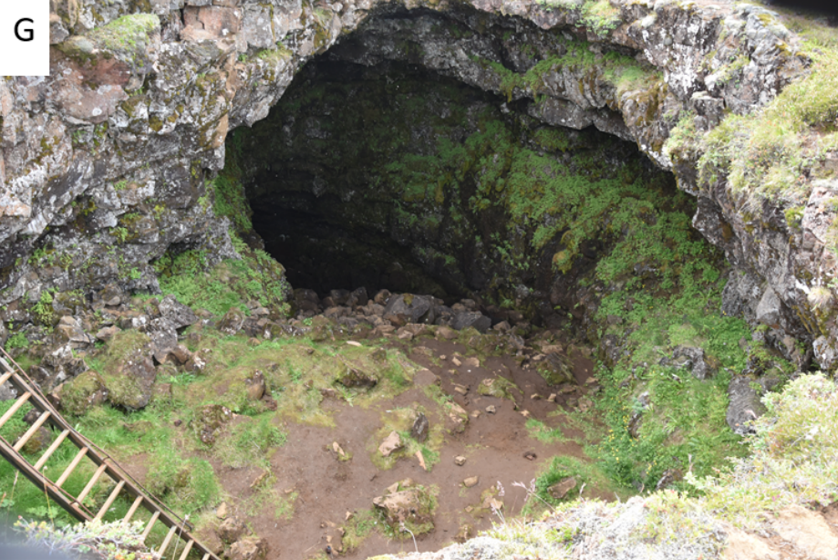 V. Arnarker is een 500m lange lavagrot die ligt in het lavaveld van Leitahraum. Via een trap kom je bij de krater terecht. Vergeet niet om een hoofdlamp en handschoenen mee te nemen.