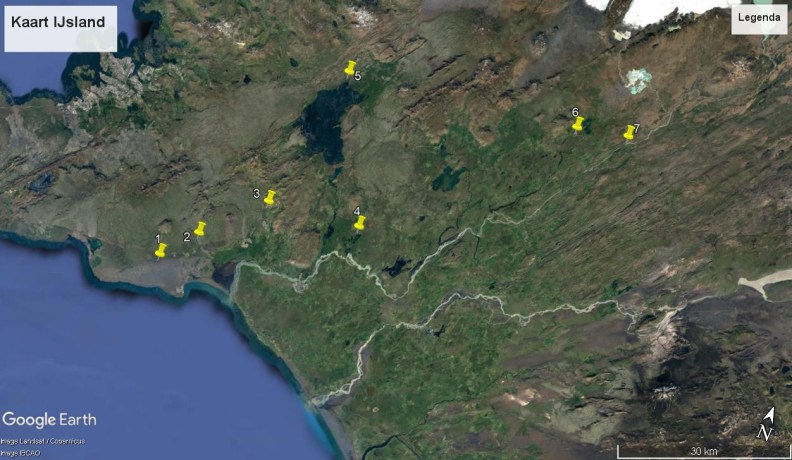 Bekijk de kaart van bron 2 waarop een deel van IJsland is te zien. Zoek de locatie op de kaart waar de foto is genomen. Schrijf in het tabel op je werkblad waarom volgens jou de keuze goed is.