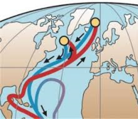 b) Bekijk de onderstaande afbeelding. Leg uit waarom de gemiddelde temperatuur in Noord-Europa lager ligt dan in Zuid-Europa. Betrek de afbeelding in je antwoord. Door op de afbeelding te klikken kun je de afbeelding van dichtbij bekijken.